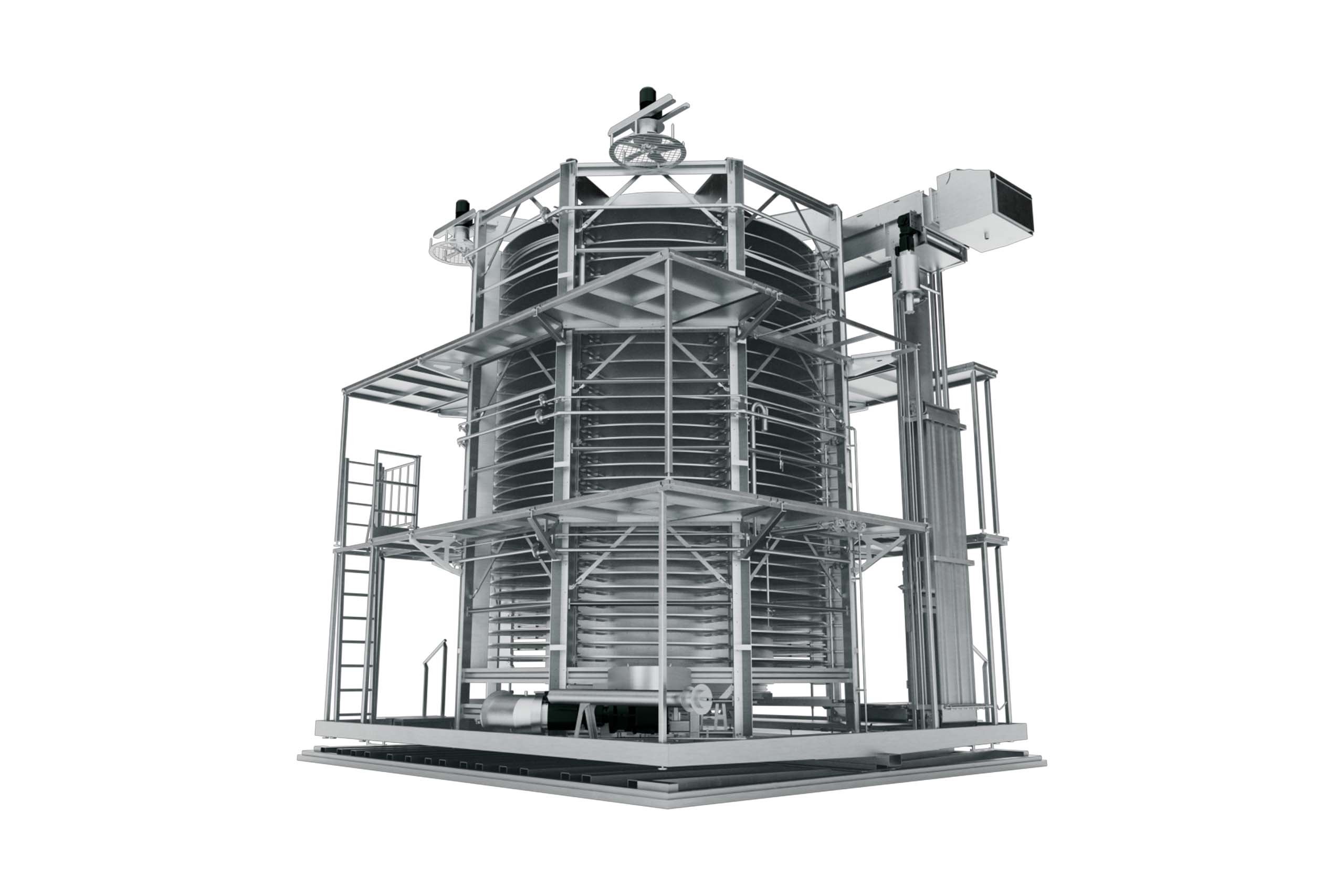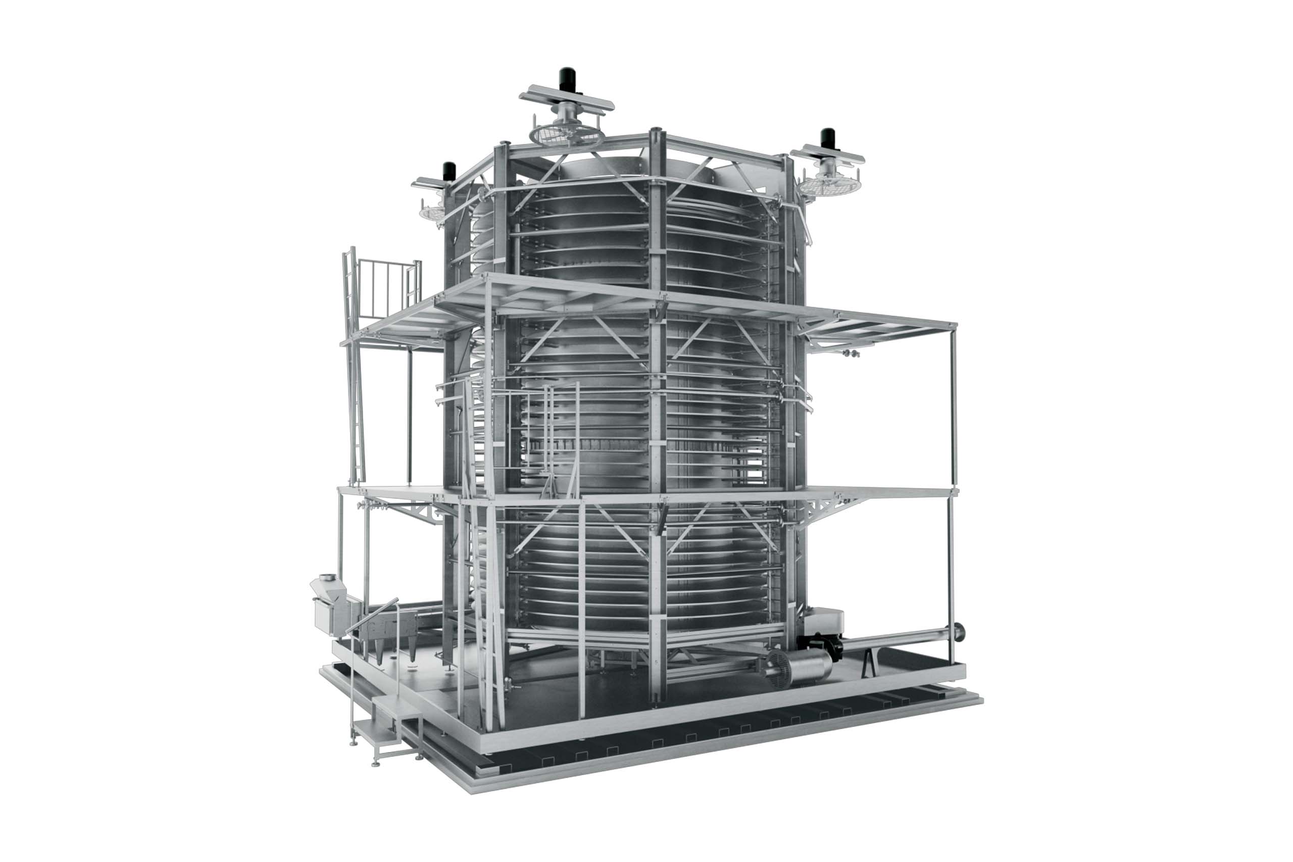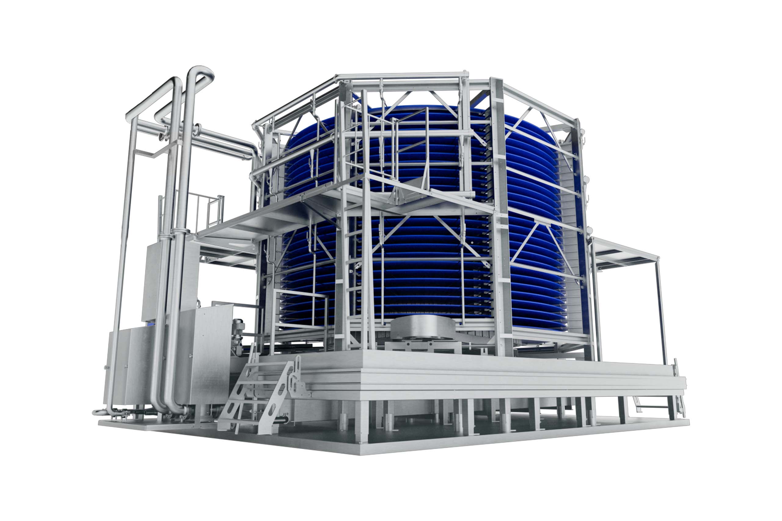 Die Spiralfroster verfügen über eine kompakte und offene Bauweise für die einfache Reinigung und Wartung sowie eine lange Lebensdauer. Wir verwenden nur hochwertige Edelstahlkomponenten, um Korrosion zu vermeiden und auch strengste Reinigungsanforderungen zu erfüllen. Die Bänder sind kompakt und darauf ausgelegt, große Produktmengen mit längeren Verweilzeiten einzufrieren. Dies macht die Technologie zu einer der bevorzugten Lösungen für Lebensmittelprozesse in der Branche.